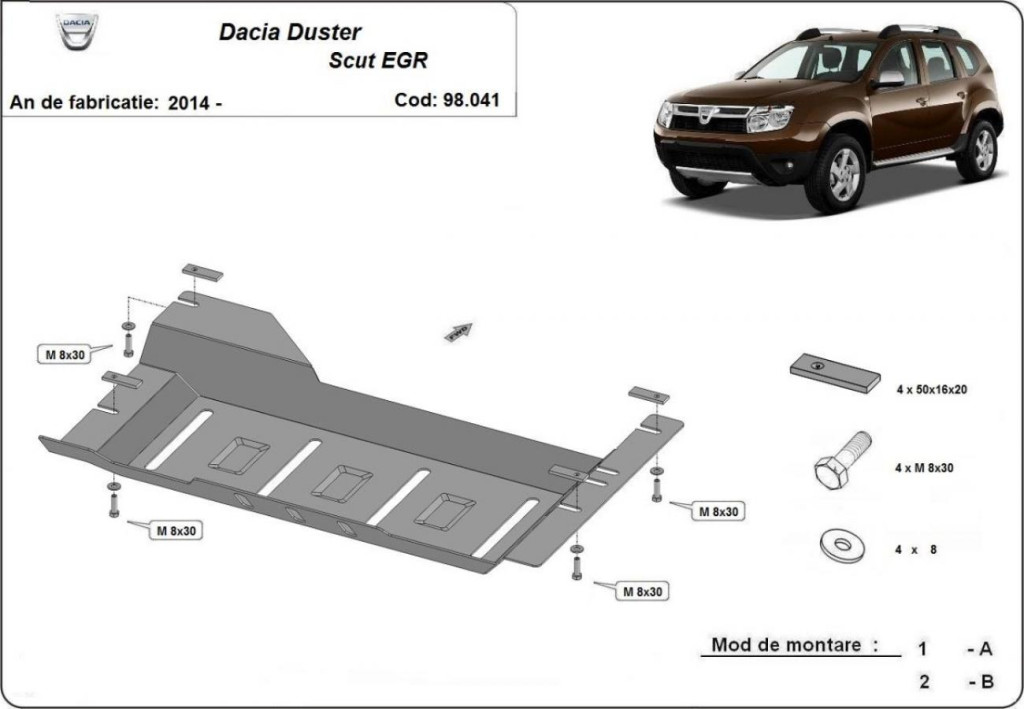Dacia Duster Diesel 2014-2017 SCUT Steel Stop&GO systém, ochranný kryt EGR
