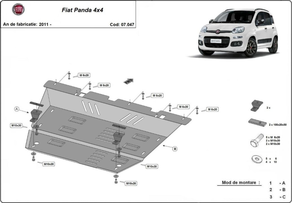 Ochranný kryt motoru SCUT z oceli pro Fiat Panda 4x4 2011-2025