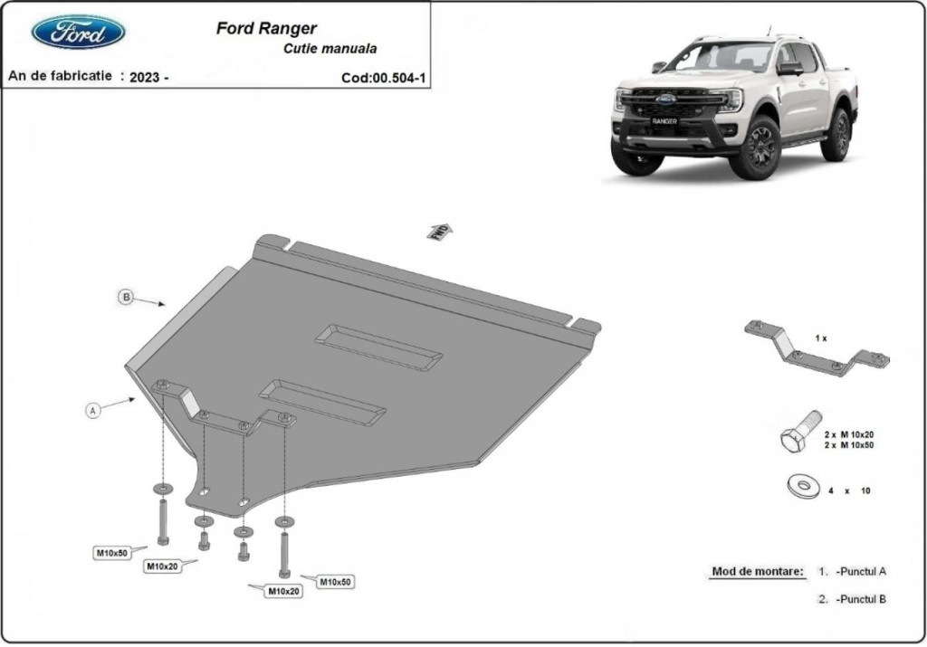 Ochranný kryt podvozku (manuální) pro Ford Ranger 2023-2025 SCUT
