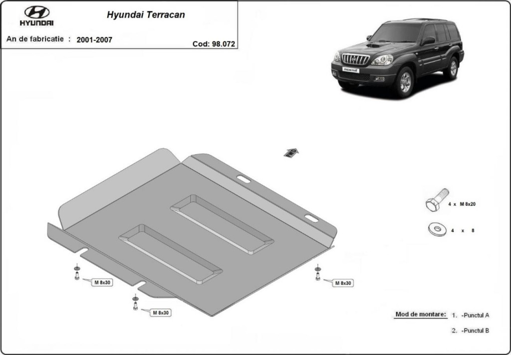 Ochranný kryt diferenciálu SCUT od oceli pro Hyundai Terracan 2001-2007