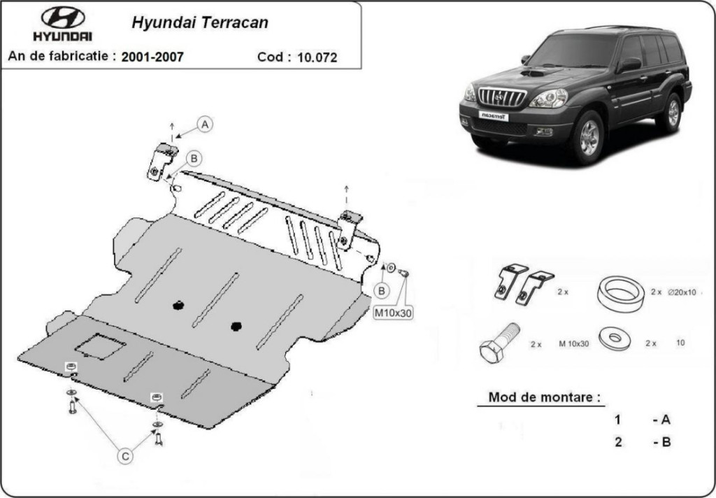 Ochranný kryt motoru SCUT od oceli pro Hyundai Terracan 2001-2007