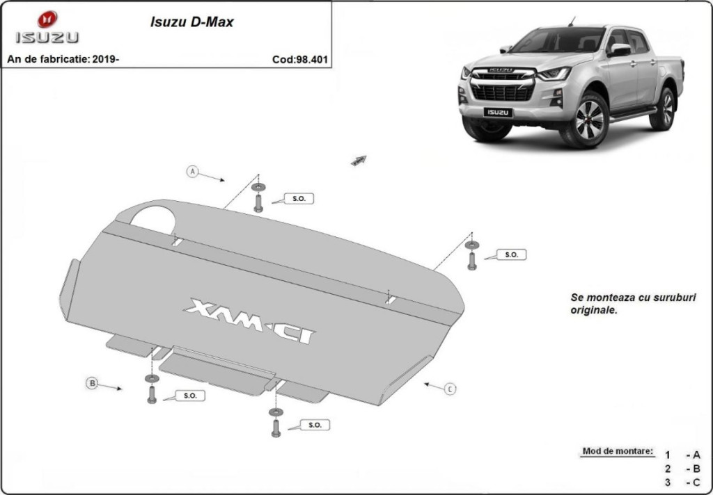 Ochranný kryt chladiče SCUT od oceli pro Isuzu D-Max 2019-2025