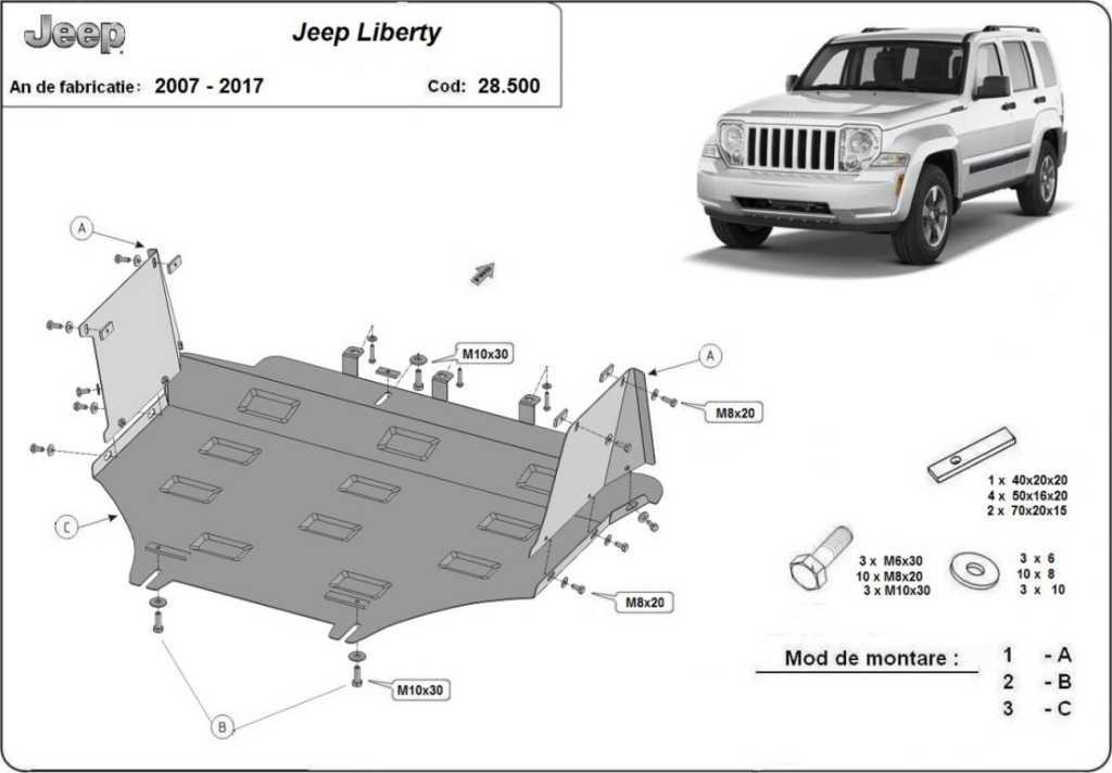 Ocelový ochranný kryt motoru SCUT pro Jeep Liberty 2007-2017