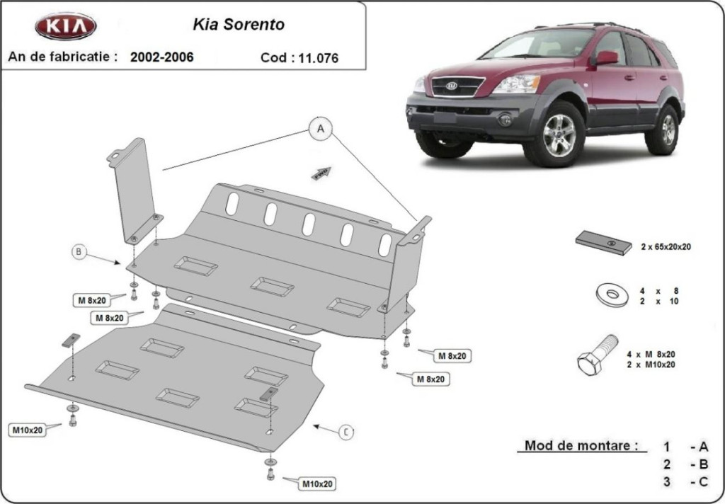Kia Sorento 2001-2006 SCUT Ocelový kryt motoru a chladiče