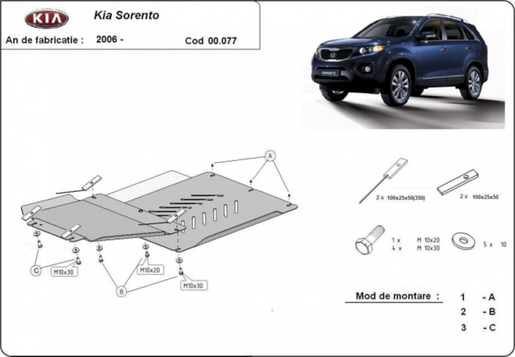Ocelový kryt převodovky a diferenciálu SCUT pro Kia Sorento 2006-2010