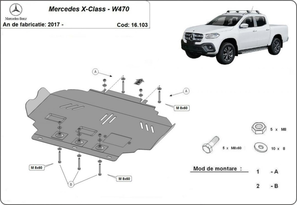 Ocelový kryt motoru SCUT pro Mercedes X-Klasse 2017-2020