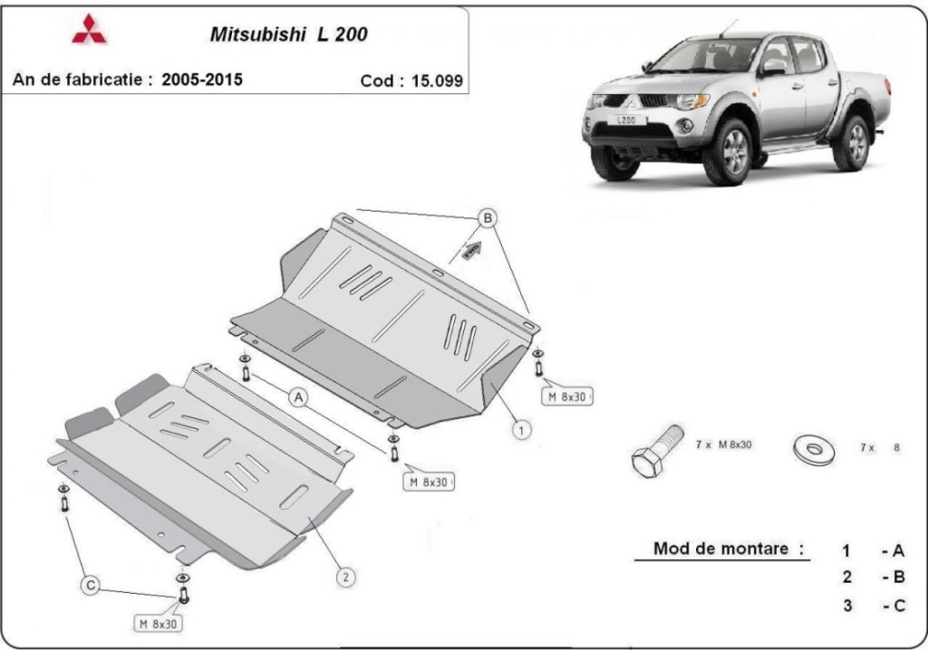 Mitsubishi L200 2005-2015 SCUT Ocelový ochranný kryt motoru a chladiče