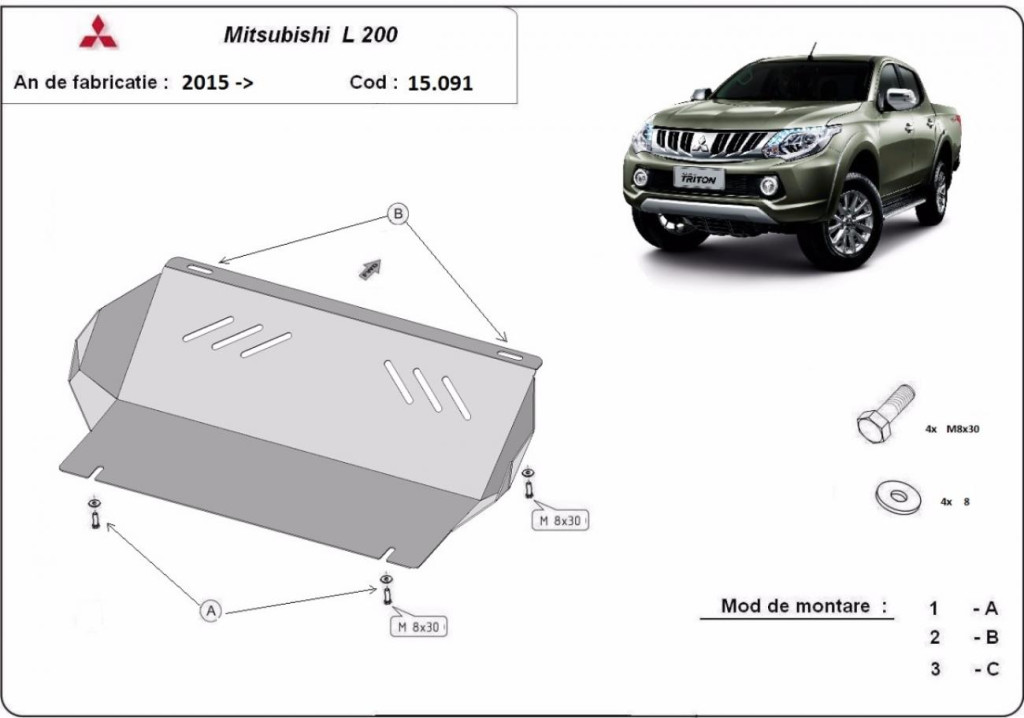 Ochranný kryt chladiče SCUT pro Mitsubishi L200 2015-2025