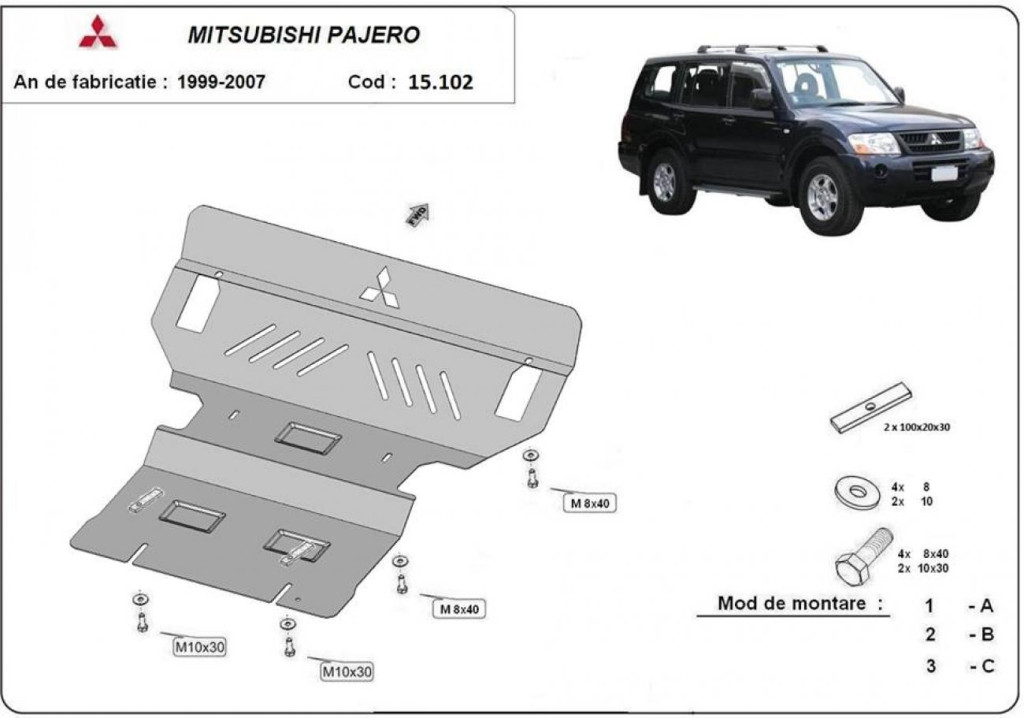 Mitsubishi Pajero 3 (V60, V70) 1999-2007 SCUT Ocelový kryt motoru a chladiče