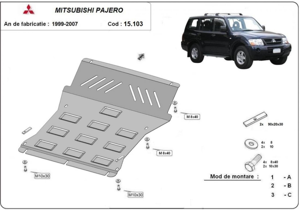 Mitsubishi Pajero 3 (V60, V70) verze 2.0 1999-2007 SCUT Ocelový kryt motoru a chladiče