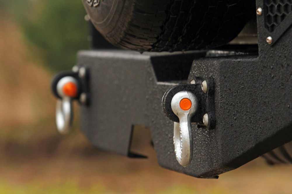 Zadní ocelový nárazník je vyroben z plechu o tloušťkách 6, 4 a 3 mm. Má hladké nastavení montáže ve třech rovinách, což významně usnadňuje jeho instalaci do vozidla. Všechny vnější šrouby na skořepinách nárazníku a na světlometových rámech jsou vyrobeny ze nerezavějící oceli, a šrouby systému montáže jsou z pozinkované oceli.