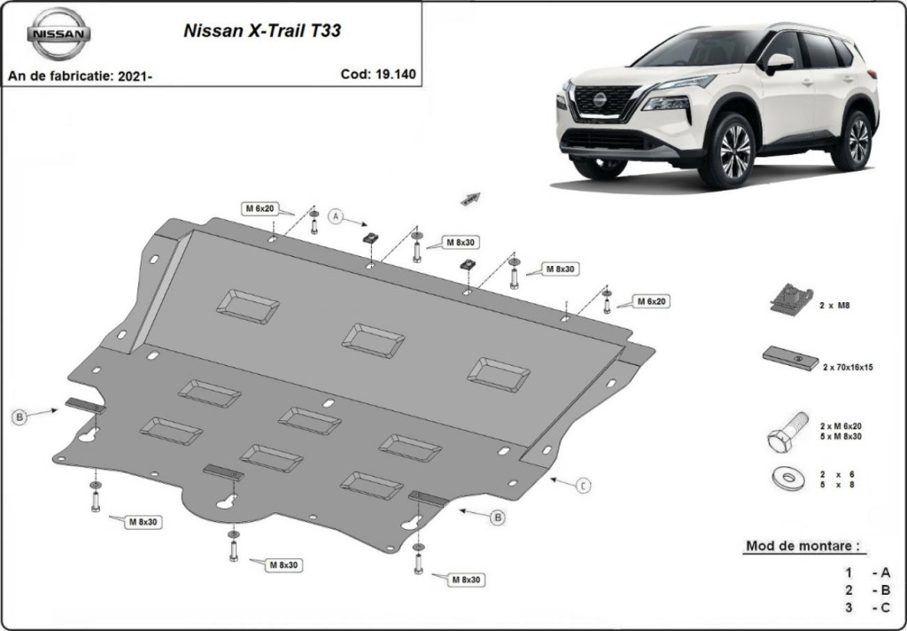 Ochranný kryt motoru SCUT z oceli pro Nissan X-Trail T33 2021-2025