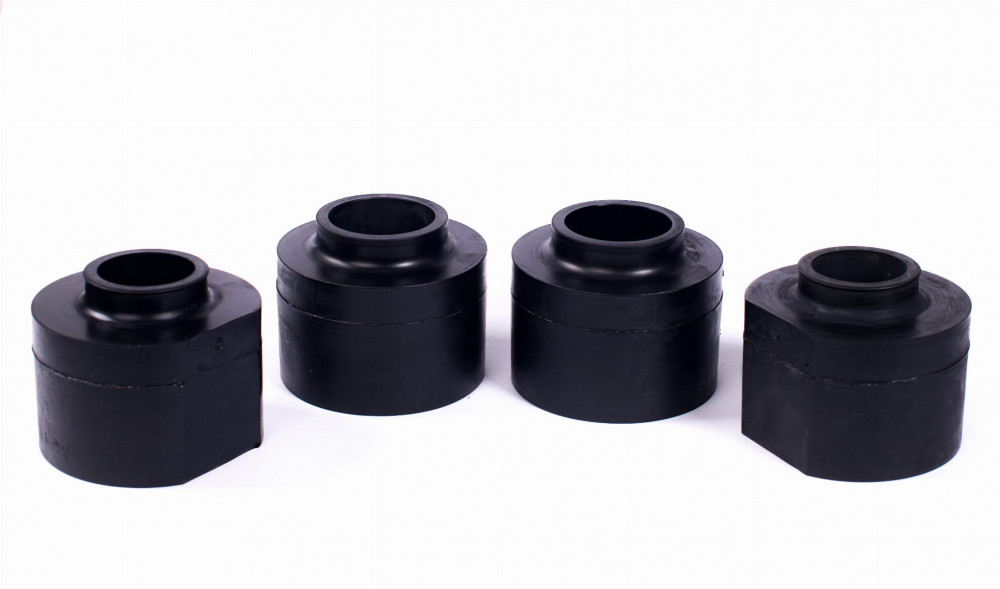 Gumové zvedací podložky pro Jeep Cherokee ZJ, které zvedají auto o přibližně 7 cm, jsou-li instalovány mezi karoserií a vinutým pružením.