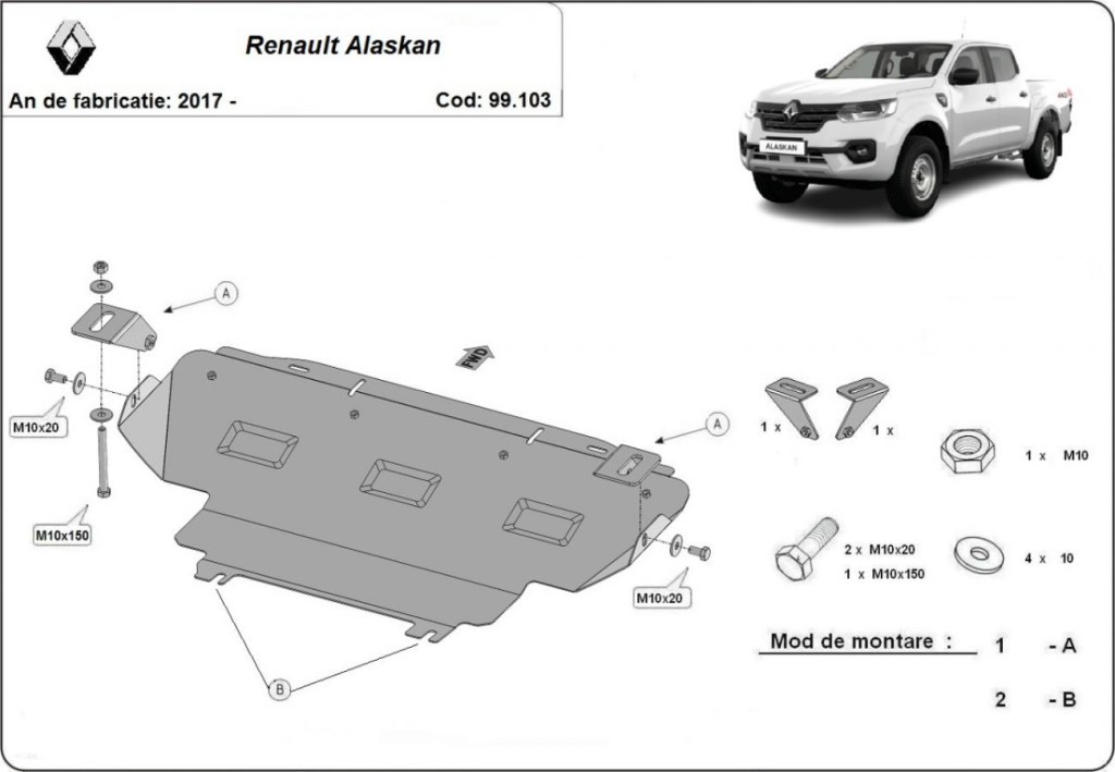Ochranný kryt chladiče Renault Alaskan 2017-2025 SCUT
