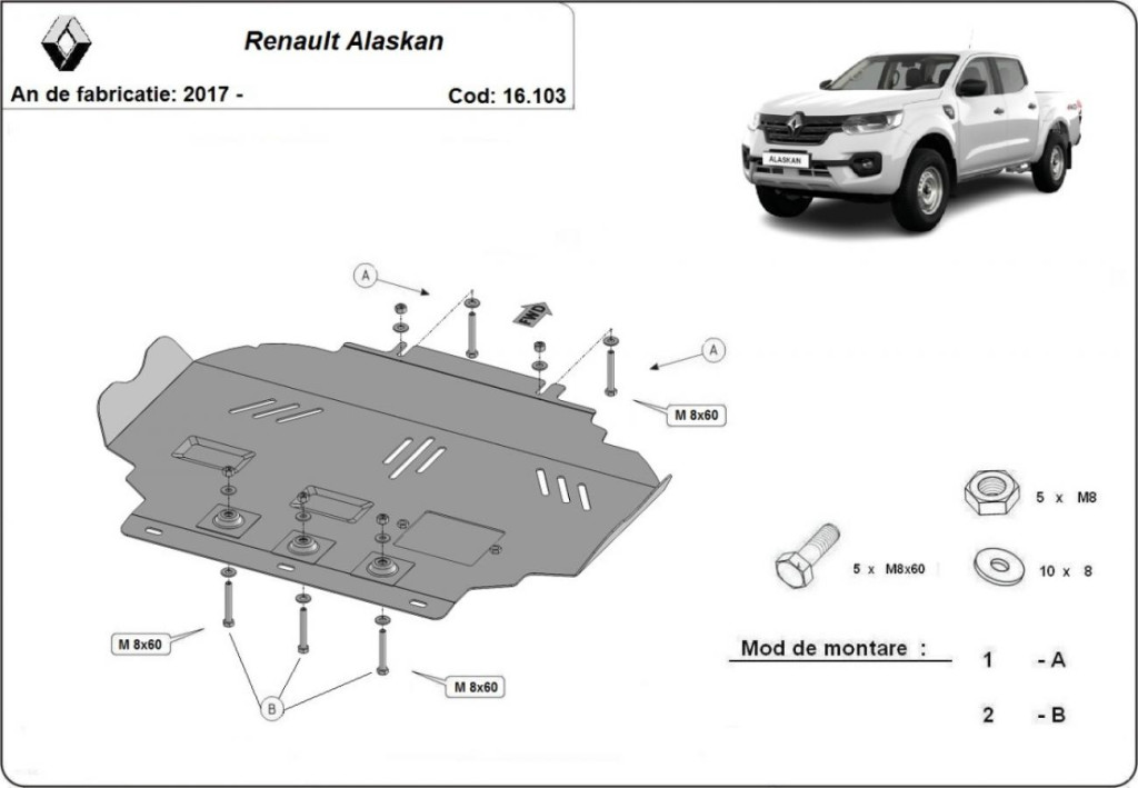 Ocelový ochranný kryt motoru pro Renault Alaskan 2017-2025 SCUT