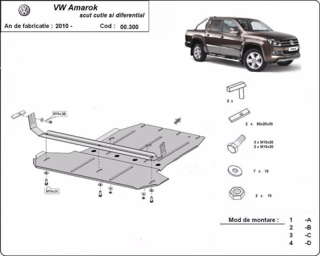 Ocelový ochranný kryt převodovky a diferenciálu SCUT pro Volkswagen Amarok 2010-2022