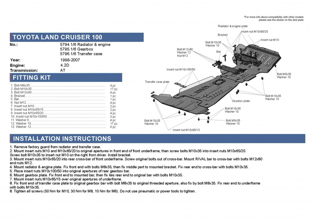 Nabízený ochranný kryt chladiče si nevyžaduje jakoukoliv úpravu podvozku, snadno jej k podvozku připevníte na místech továrních otvorů, není tedy třeba provádět žádné úpravy na podvozku!