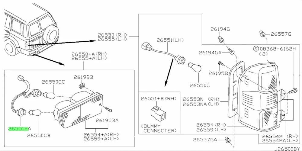 Nissan Patrol Y61 zadní dolní tovární světelný kabel světelný zástrčka