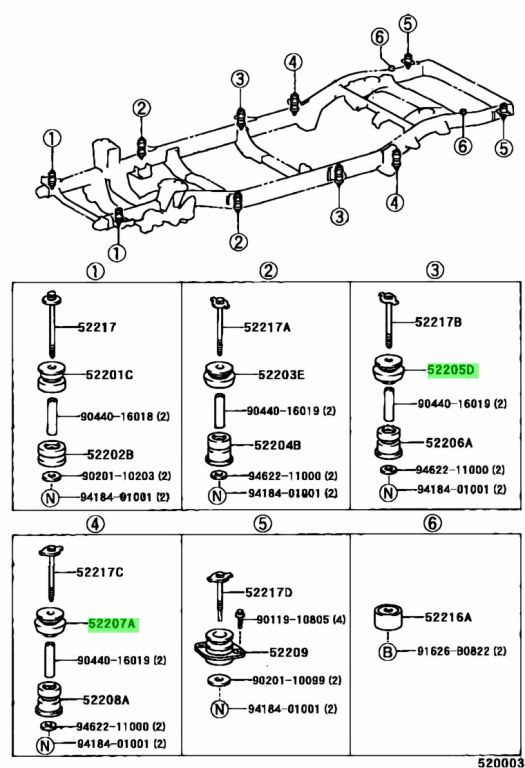 Gumová podložka středního nosníku kabiny pro Toyota Land Cruiser 90