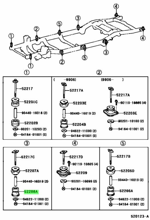 Gumová podložka středního spodního nosníku kabiny pro Toyota Land Cruiser 90