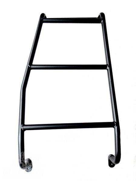 Žebřík má specifický tvar, povrch je pozinkovaný a natřený matnou, černou, práškovou barvou. Je vyrobený z trubek o průměru Ø 25 mm.