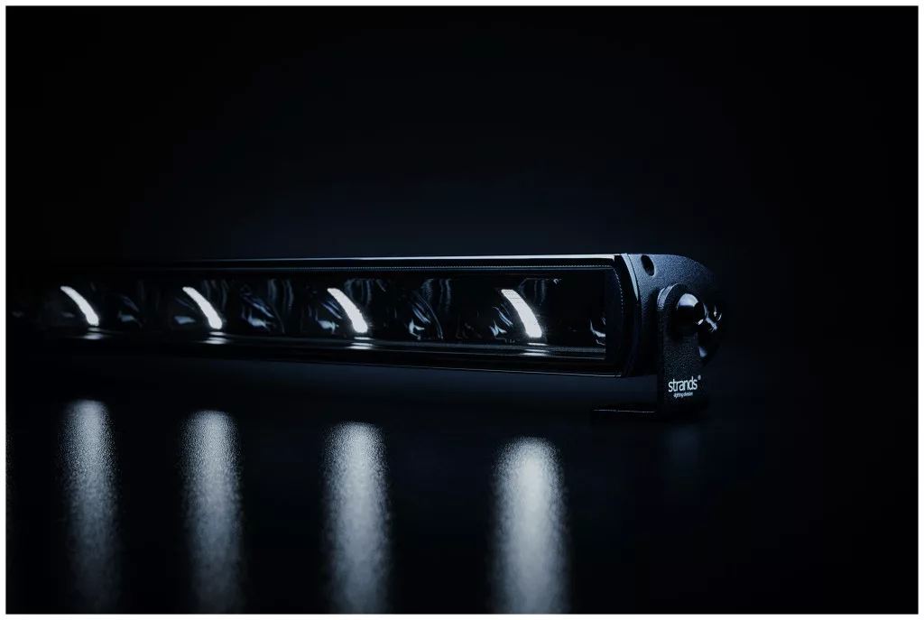 A Strand Dark Knight Nuuk 30' egy új generációs led sáv, amelyet kifejezetten elektromos járművekhez terveztek. A Nuuk kiváló teljesítményt kínál alacsonyabb energiafogyasztás mellett, a rámpa kiváló minőségű fénykúpja pedig a gyártó szerint 14 200 lumen maximális teljesítményt produkál, lenyűgöző 481 m @ 1 lux hatótávolsággal. Az erőteljes kombinált fénykúp messzire és messzire is ragyog, így még a hirtelen előreugró vad is észlelhető az időben. A led sáv nagyon alacsony profillal rendelkezik, ami megkönnyíti a telepítést még szűk helyeken is, ahol a nagyobb led sávok nem férnek el. A Dark Knight Nuuk modern megjelenésű, sötét szerkezete és optikája gyakorlatilag bárhol diszkrét és stílusos rögzítést tesz lehetővé. Ezenkívül a Dark Knight Nuuk narancssárga és fehér parkolólámpákkal is rendelkezik, amelyek kiegészítik a rámpa modern megjelenését.