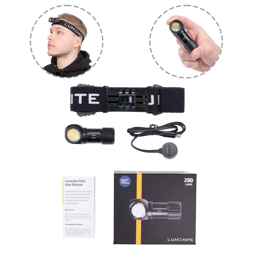 A LUMONITE Pixel V2 a rendkívül kompakt és tartós, Finnországban tervezett Pixel fejlámpa továbbfejlesztett változata. A lámpa nagyrészt a rendkívül népszerű Lumonite Compass kiváló tulajdonságaira épül, és elődjéhez hasonlóan a Pixel V2 is az egyszerűség felsőbbrendűségét képviseli! A tartós és diszkrét kialakítás, a lenyűgöző teljesítmény, a hosszú üzemidő és az egyszerűen használható felhasználói felület együttesen ezt a lámpát közvetlenül a méretkategóriájának elitjébe emeli. A kompakt Pixel V2 maximális fényereje 250 lumen, emellett széles és egyenletes fénysugárral, hosszú üzemidővel és mindössze 66 gramm súlyú testtel rendelkezik. A kiemelkedő funkciók elképzelhetetlenül kis méretben sűrítve kiváló választássá teszik a Pixelt például házimunkához, szabadtéri tevékenységekhez és egyéb hobbicélokhoz.