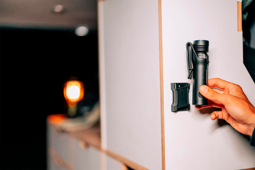 A lámpához egy teljesen új és többcélú övtok tartozik, amely minden alkalommal, amikor a lámpát belehelyezik, összeköti a lámpát a kulcszárral, és kikapcsolja a kulcszárat is, amikor a lámpát kiveszik a tokból. Ha a lámpát bekapcsolt állapotban helyezik a házba, a fényerő automatikusan 600 lumen alá csökken, így a lámpa által termelt nagy fényenergia nem okoz kárt például a közeli ruhákban. Ezenkívül a tok töltőállomásként is funkcionál, a lámpához pedig egy praktikus fali tartó is tartozik, amelyre az övtok csúsztatható például tárolás vagy töltés közben. A Seeker 4 Pro egy 21700-as lítium-ion akkumulátorral (tartozék) működik, amely az Olight esetében megszokott módon közvetlenül a lámpa belsejében tölthető a lámpa mágneses végzáróján keresztül az MCC3 töltőkábellel. Az akkumulátor USB-C töltőkábellel is tölthető, ha a lámpát az övtokba helyezi. Mindkét esetben a töltés gyors és egyszerű, az akkumulátor töltöttségi állapota pedig a kapcsoló melletti jelzőfényeken ellenőrizhető. Öt év (60 hónap) garancia!