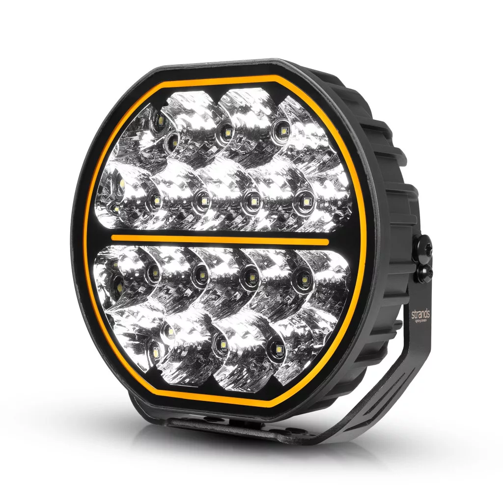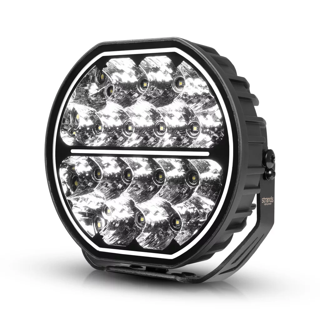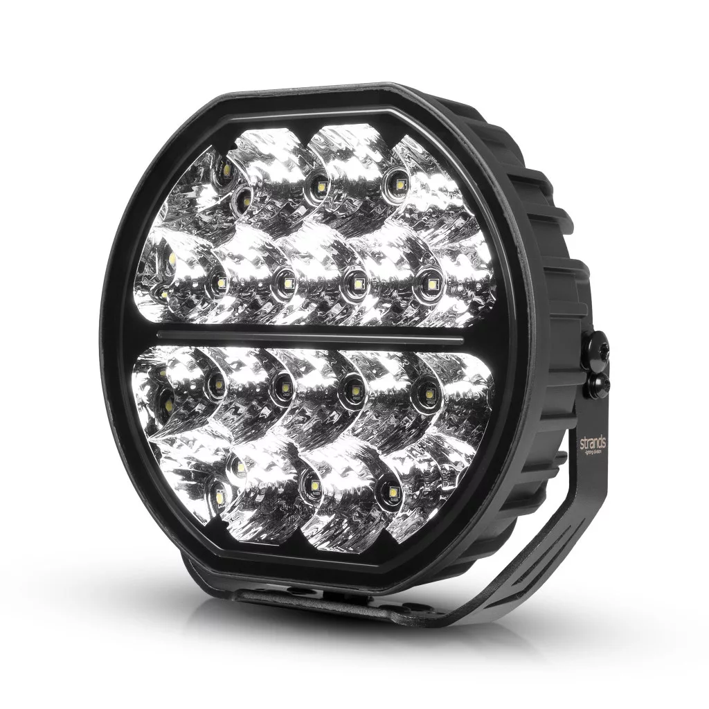 A strands Big Energy 9" egy stílusos, kerek kiegészítő lámpa, amely kétszínű parkolófénnyel van felszerelve, amely 11 908 lumenes fényerőt és széles, 1 luxos fényerővel közel fél kilométert ellátó fénysugarát produkál, megbízhatóan vezetve a sötét utakon. Ez a karcsú keretű kiegészítő lámpa könnyen felszerelhető még szűkebb helyeken is, és méretéhez képest könnyű szerkezetének köszönhetően kisebb járművek elejére is alkalmas. A gyártó szerint egyetlen lámpa 444 m-es hatótávolságot biztosít 1 luxos fényerővel előre, miközben a reflektorok oldalra is irányítják a fényt, garantálva az optimális láthatóságot mind előre, mind az út szélére, vagy akár még tovább is, mind a hatótávolság, mind a szélesség még tovább nő. Ahogy a neve is sugallja, a Big Energy hatalmas fényerőt biztosít a jármű saját távolsági fényszóróinak támogatására, amelyek megvilágítják az utat, így a vezető szabadon koncentrálhat a legfontosabb dologra, azaz a vezetésre.