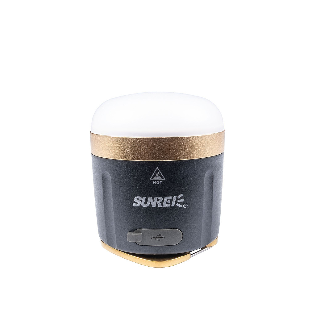 5 wattos CREE LED diódát használ. A diódával és a diffúzorral kombinálva hihetetlenül szórt fényt hoz létre, amely egyszerre kellemes és elég erős a világításhoz. A fénykúp optimalizálva van a lehető leghatékonyabb általános világítás biztosítására, így tökéletes fényforrásként mind munka közben, mind a sátorban. A lámpa alatt található egy akkumulátorjelző és egy kapcsoló, amellyel a különböző üzemmódok állíthatók be. A Sunree lámpákat a sokoldalúság szem előtt tartásával tervezték. A lámpa a beépített kampóval felakasztható, vagy sík felületre helyezhető, erős mágneses talpának köszönhetően pedig fémfelületekre is rögzíthető.
