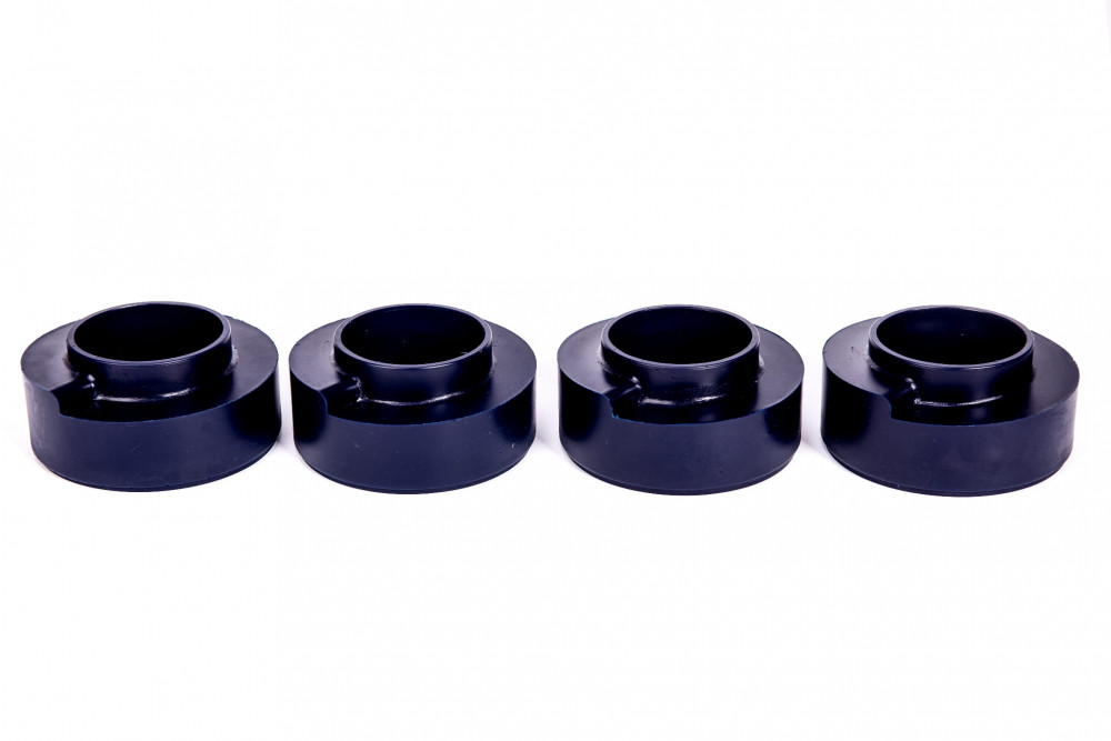 Polyuretanové zdvihací podložky pro Suzuki Jimny, které zvedají auto o přibližně 4,5 cm při instalaci mezi vinutou pružinou a karoserií.