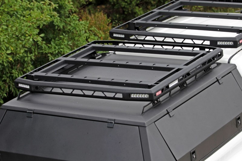 More4x4 střešní nosič pro pevný střešní box o rozměrech 120x120 cm s montážní lištou.