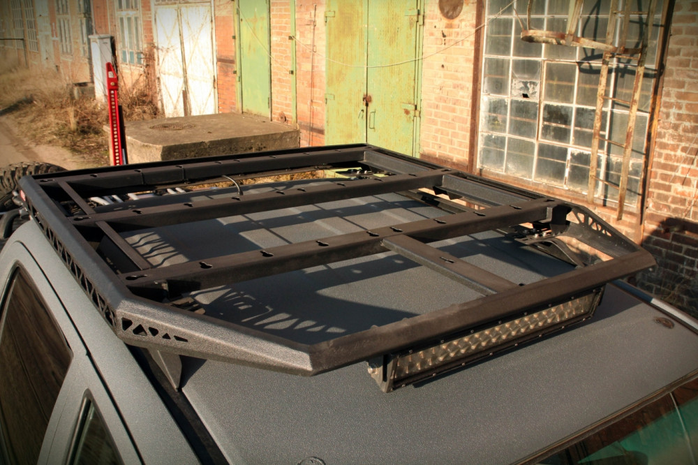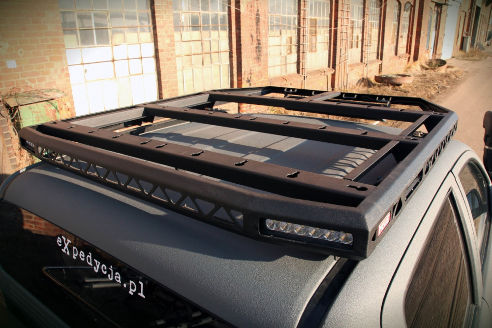 Plošina je v horní části plochá a přizpůsobená pro montáž střešních stanů. Na horní ploše má offroadový kufr otvory pro snadnou montáž sítě na zavazadla a pro přišroubování případných individuálních upevňovacích prvků.