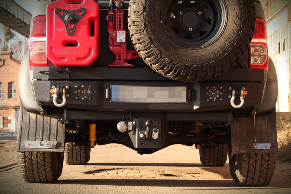 Zadní, ocelový pevnostní nárazník je vyrobený z oceli o tloušťce 6, 4 a 3 mm. Jeho montáž je velice snadná, upevňuje se ve třech rovinách, což výrazně usnadňuje instalaci do vozidla. Všechny vnější šrouby na krytu nárazníku a v rámech osvětlení jsou vyrobené z nerezové oceli a montážní šrouby jsou vyrobené z pozinkované oceli.
