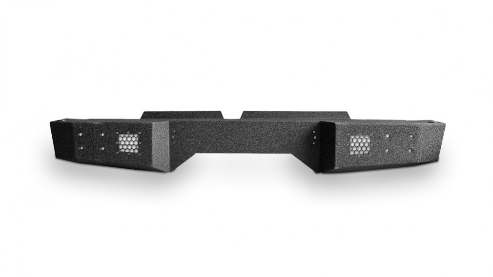 Nárazník má vestavěné držáky pro mlhovky a zpevněné držáky pro kotvící háky.