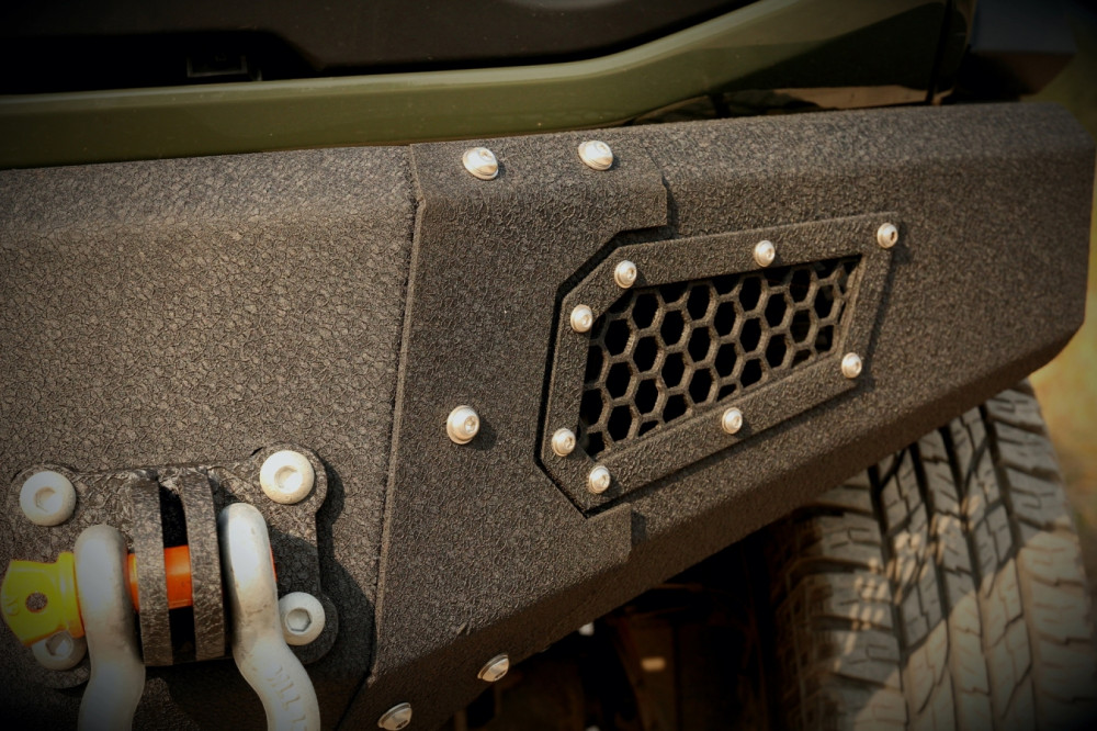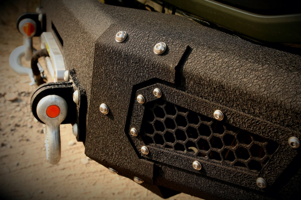 Přední, ocelový pevnostní nárazník je vyrobený z oceli o tloušťce 6, 4 a 3 mm. Jeho montáž je velice snadná, upevňuje se ve třech rovinách, což výrazně usnadňuje instalaci do vozidla. Všechny vnější šrouby na krytu nárazníku a v rámech osvětlení jsou vyrobené z nerezové oceli a montážní šrouby jsou vyrobené z pozinkované oceli.