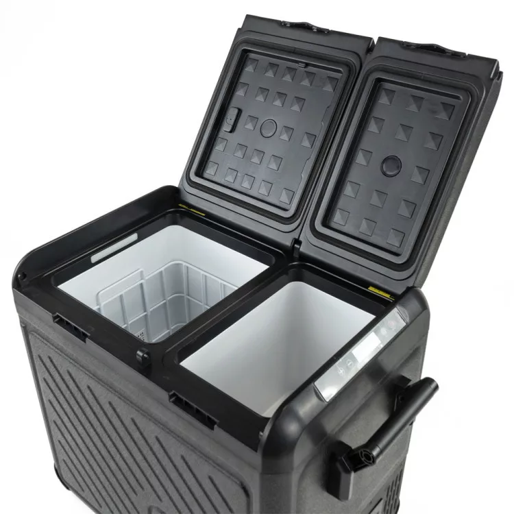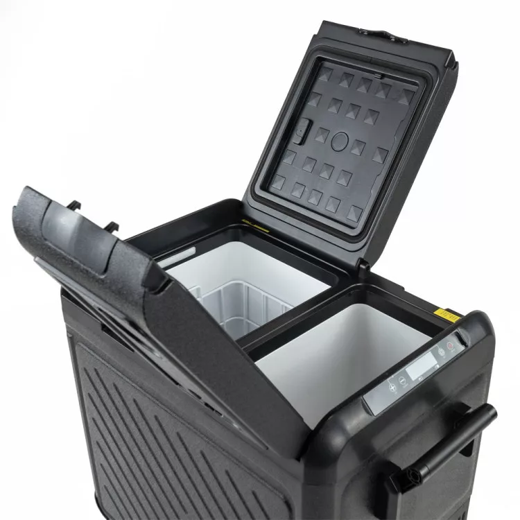 A hűtőszekrény rezgéscsillapító technológiával rendelkezik, amely ellenáll az ütéseknek és rezgéseknek, ami megbízható teljesítményt biztosít még göröngyös utakon is, és lehetővé teszi, hogy akár 30 fokos szögben (akár néhány percig) is működjön. Könnyedén válthat az energiatakarékosságot szolgáló ECO üzemmód és a gyors hűtést biztosító MAX mód között, mindezt egy felhasználóbarát LED-panellel vezérelve. A kettős zóna önállóan nyíló fedelekkel és az ajtónyitási irány megváltoztatásának lehetősége növeli a rugalmasságot.
