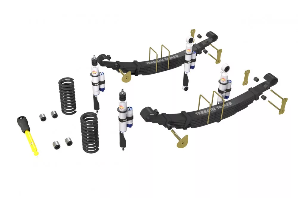 Terrain Tamer felfüggesztés készlet PRO lengéscsillapítókkal emelés +40mm +100kg terhelésig elöl +300kg terhelésig hátul dieselhez Toyota Landcruiser 78|79 1999-> szintszabályzás nélküli modellek